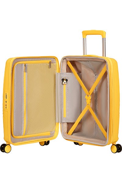Βαλίτσα καμπίνας American Tourister 55cm με σχέδιο Mickey, 4 τροχούς και κλειδαριά TSA για άνετα και ασφαλή ταξίδια.