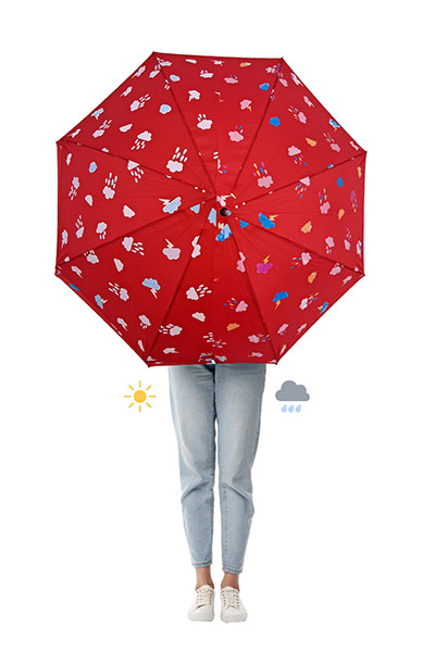 Κάνε τη βροχή… πιο διασκεδαστική! Αυτή η καινοτόμα ομπρέλα αλλάζει χρώμα όταν βρέχεται, αποκαλύπτοντας ζωηρά μοτίβα που εμφανίζονται μόνο υπό την επαφή με το νερό. Χάρη στη σταθερή κατασκευή της και το ελαφρύ πλαίσιο, προσφέρει άνετο κράτημα και αξιόπιστη προστασία από τον αέρα και τη βροχή.