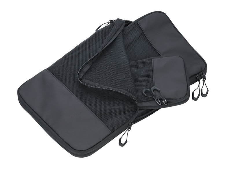 Με minimal σχεδιασμό σε μαύρο χρώμα, το σετ packing cubes αποτελεί απαραίτητο αξεσουάρ για κάθε οργανωμένο ταξιδιώτη.