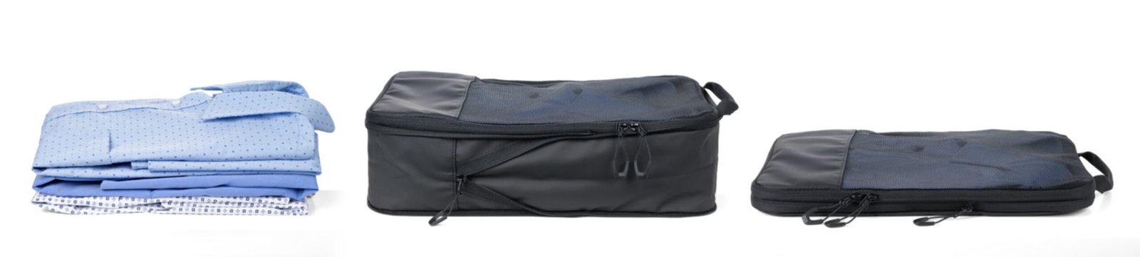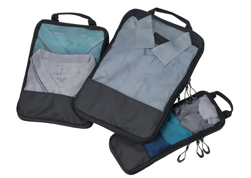 Πρακτικό σετ packing cubes για οργάνωση ρούχων και αξεσουάρ στη βαλίτσα.