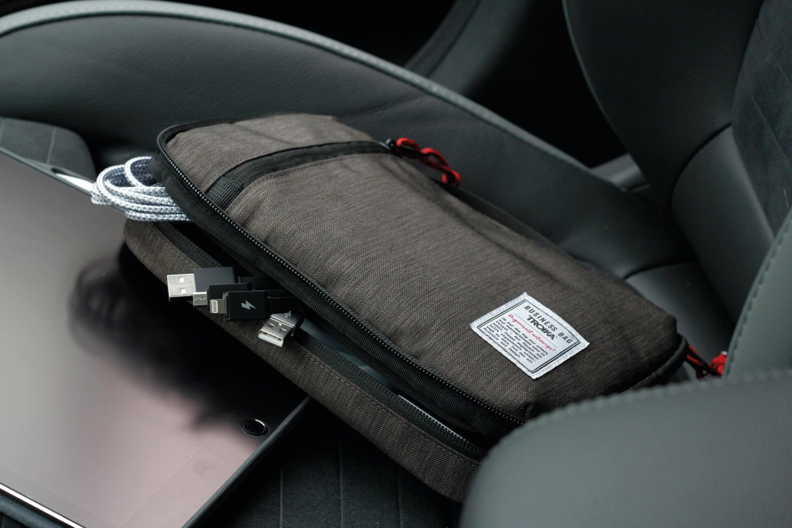 Επαγγελματική οργάνωση για καλώδια, φορτιστές και business essentials – κομψό design σε γκρι απόχρωση.